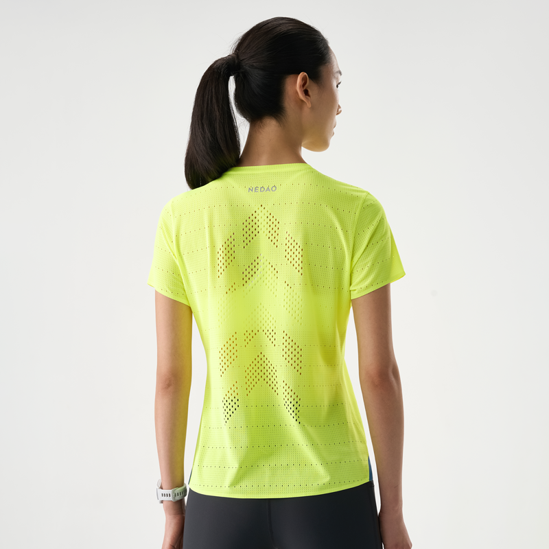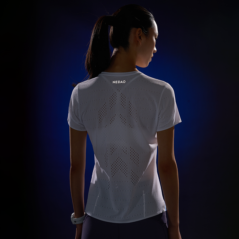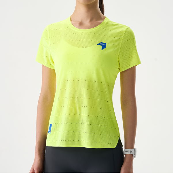 Built to racing standards, the QiFlow Running T-Shirt maintains exceptional lightness in both dry and sweat-soaked conditions.