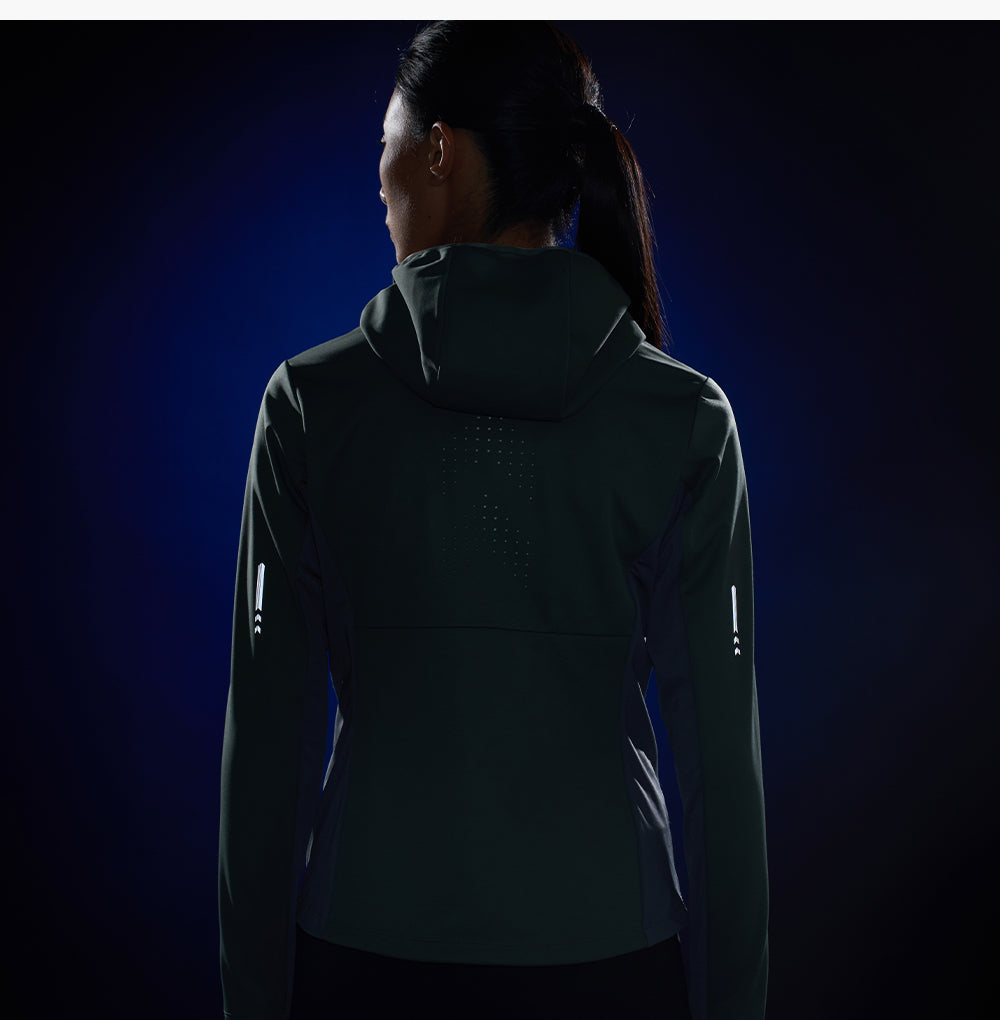 Crafted for winter road runs and cold-weather training, the Dual-Zone Hooded Softshell combines windproof insulation with targeted breathability. Its multi-zone structure intelligently balances warmth and ventilation — keeping your core protected while preventing overheating during high-intensity movement.